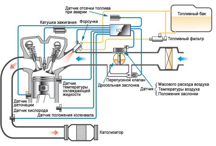 Устройство системы питания инжекторного двигателя
